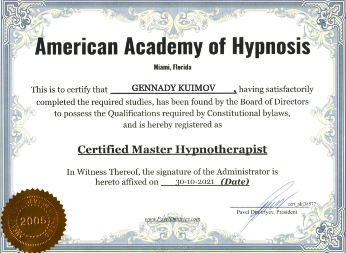 Сертификация в Американской Академии Гипноза